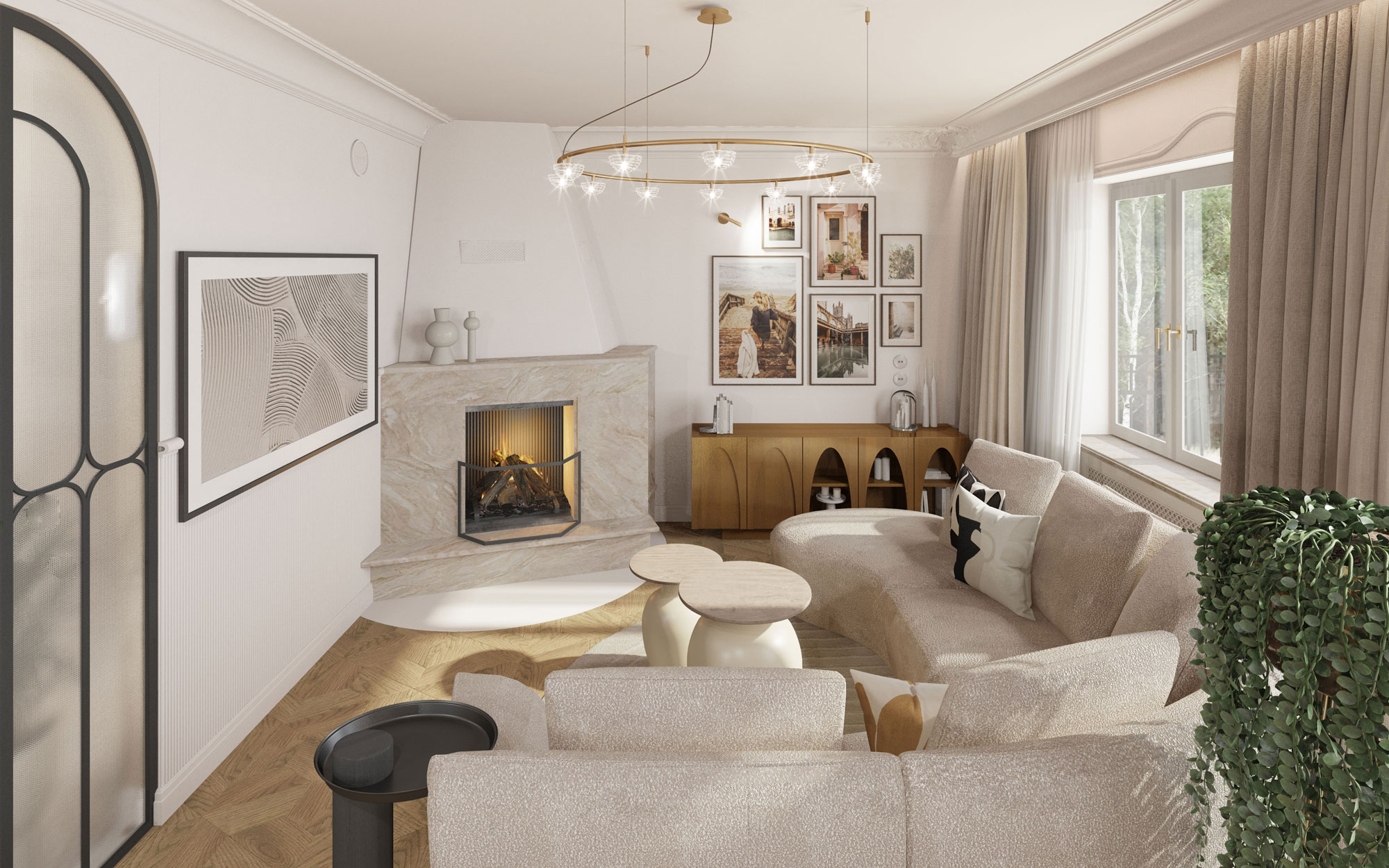 Dom pod Poznaniem, który emanuje światłem i eklektyczną elegancją. Powstał na potrzeby kompleksowego remontu domu prywatnego – tam, gdzie klasyka zestawiona została z nowoczesnością, a sztukateria z indywidualistycznym zacięciem.